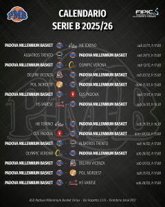 Il campionato di Serie B scatterà sabato 22 novembre, in casa – sempre al palasport di Via Pozzetto 23/6 a Piombino Dese – contro Torino. Il girone comprende anche Trento, Verona, Delfini Montecchio, Polisportiva Nordest, CUS Padova, Varese.