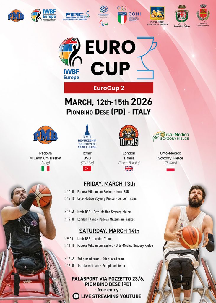 Tutti gli incontri saranno inoltre trasmessi in diretta streaming, sui canali Youtube Padova Millennium Basket e IWBF Europe, con live stats su www.iwbf-europe.org/event/eurocup-2-group-2026.